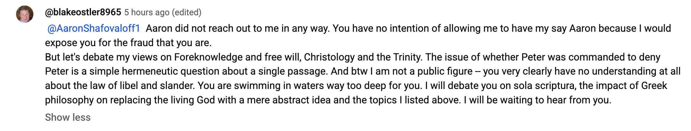 See also James R. White’s refutation of Ostler’s comment. “ReformCon Road Trip DL: Colorado Insanity, Why You Should Not Join the Roman Catholic Church.” 33:06. Link. ↩︎ - Blake Ostler. YouTube comment. “Ostlerian Mormonism: Mormon Philosopher vs. Mormon Prophets” (May 6, 2025). Comment posted on May 8, 2025. Video link. Comment link. Screenshot. Accessed May 9, 2025. ↩︎